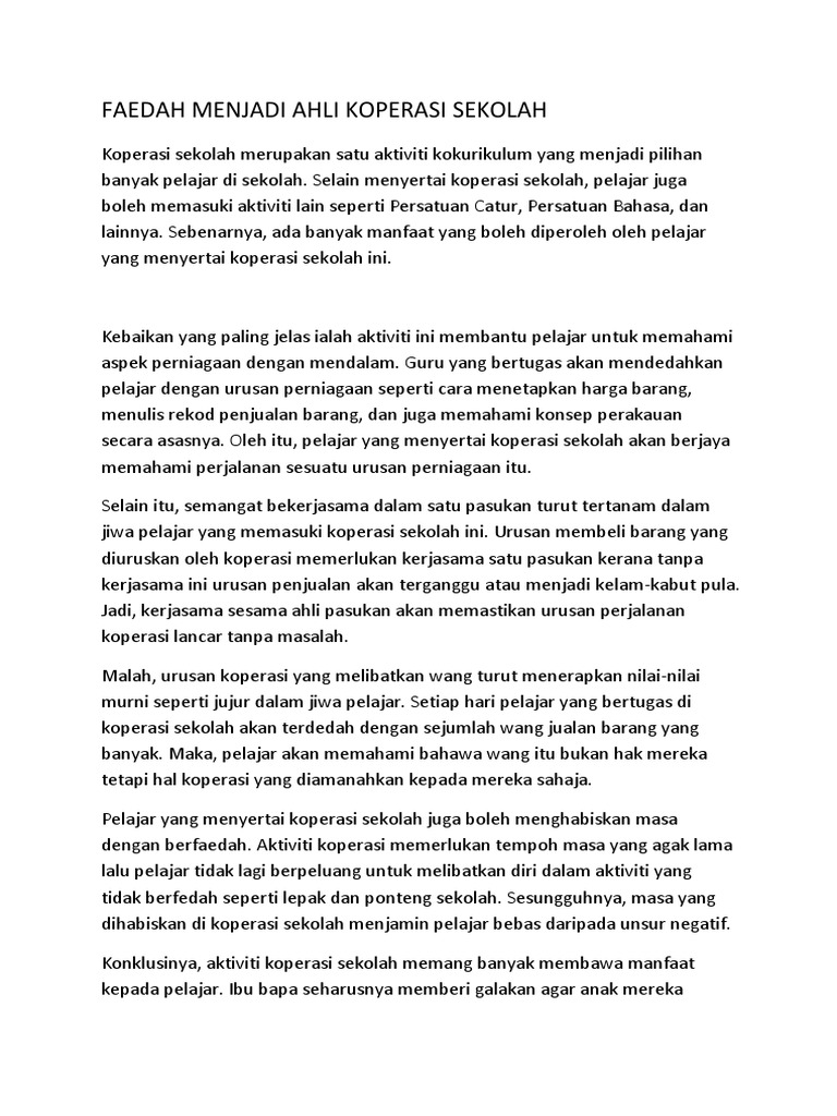 Isi Karangan Kebaikan Faedah Koperasi Sekolah Pendahuluan Karangan Koperasi Sekolah Ialah Studocu
